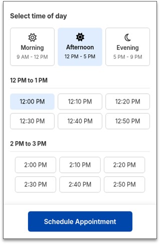 Maintained structured appointment times of intuitive Morning, Afternoon, and Evening groups, keeping improved usability, accessibility, and simplified patient decision‑making.