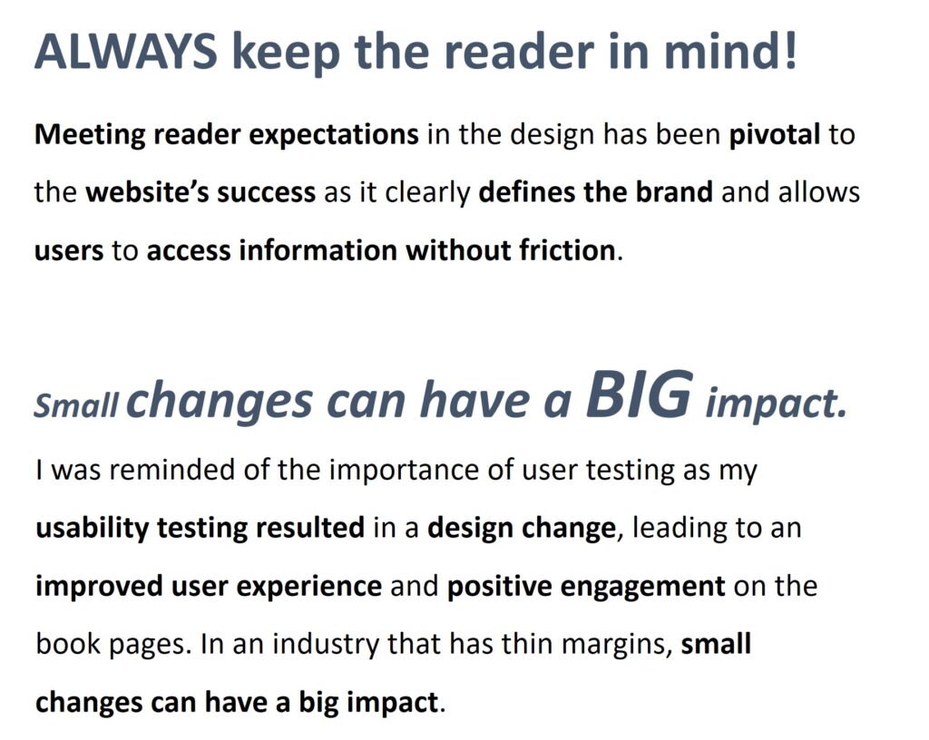 I ran A/B tests with 100 readers on the original and revised page designs for the Home page and Book Series page.